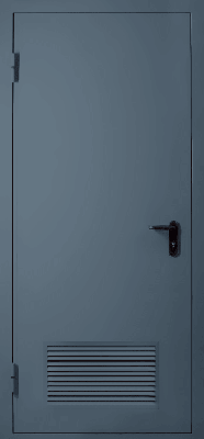 - Комплектация. Металлические двери в котельную имеют вентиляционную решётку. Это необходимо для отвода дыма и примесей. Котел не погаснет, в комнате будет свежий воздух.